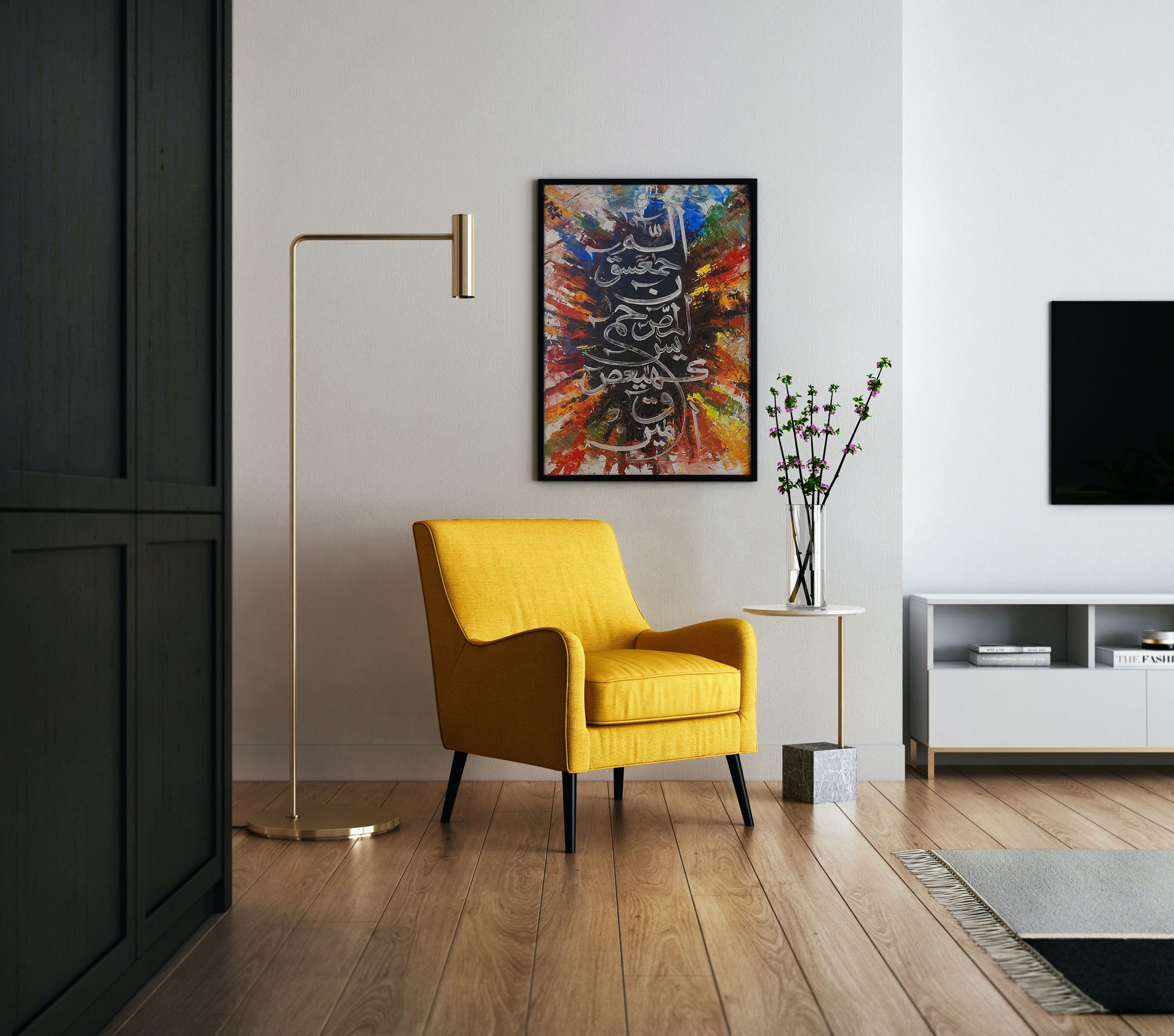 Add a splash of culture and color to your space with this Abstract Oil Painting Islamic Calligraphy Poster. Its vibrant brushstrokes and elegant script bring a lively, artistic flair that sparks curiosity and joy. Perfect for creating a playful yet meaningful atmosphere, this wall art invites you to celebrate tradition with a modern twist. Brighten your room and your mood all at once!