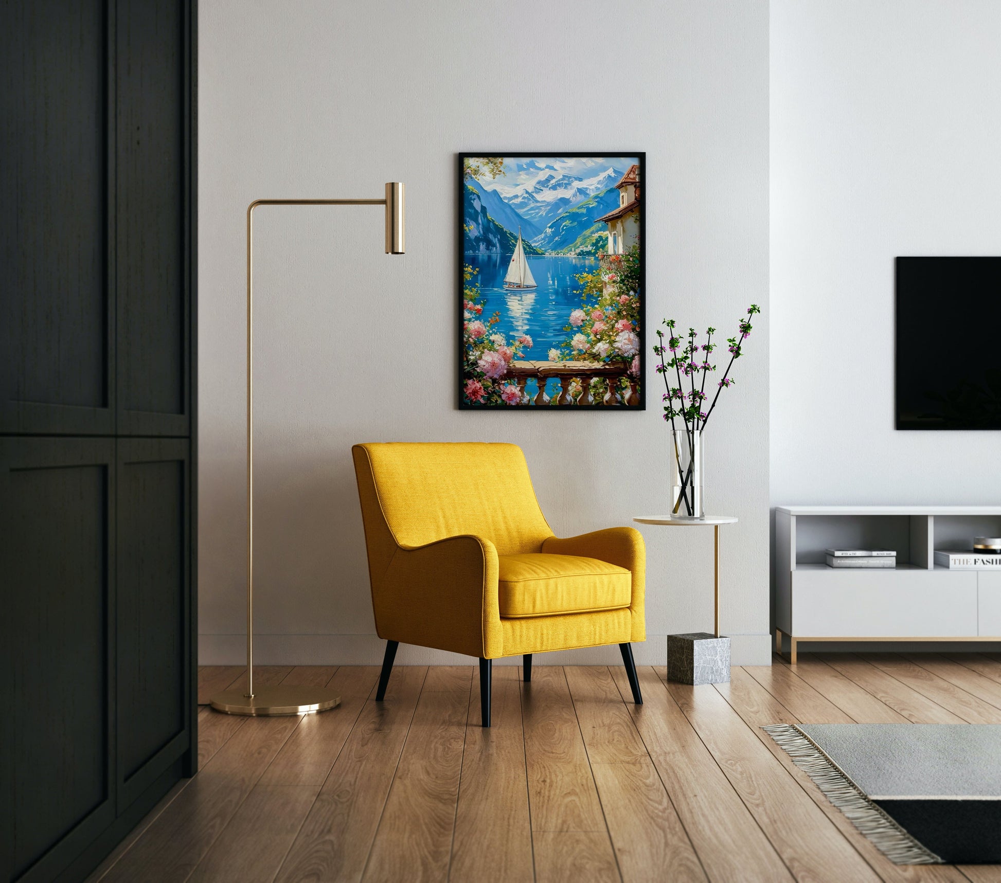 Bring a burst of fresh mountain air into your space with the Alpine Lake View with Flowers Poster Wall Art. This lively print captures a vibrant alpine lake framed by colorful wildflowers, adding a cheerful splash of nature’s beauty to your walls. Perfect for brightening any room with a playful touch of the outdoors!