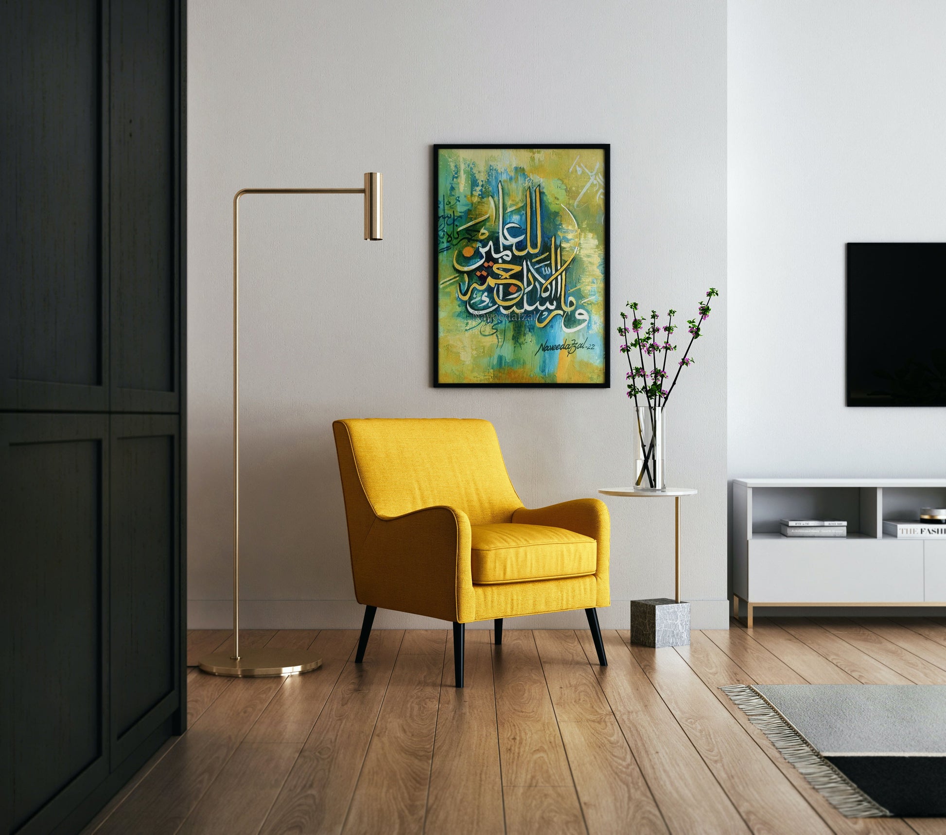 Add a touch of charm and spirituality to your space with the Modern Wa Ma Arsalnaka Illa Rahmatan Lil Alameen Calligraphy Poster. This stylish wall art blends contemporary design with timeless calligraphy, making it a delightful focal point that sparks joy and reflection. Perfect for brightening any room with a meaningful message in an eye-catching way.